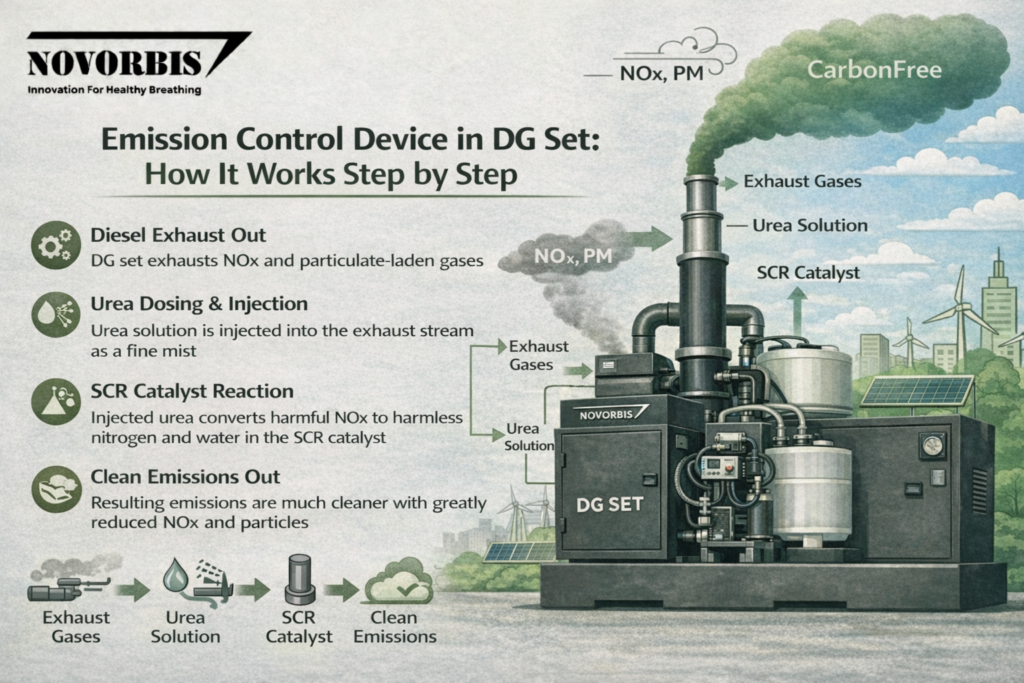 In this guide, we explain how an emission control device works in a DG set—step by step, in very simple language.